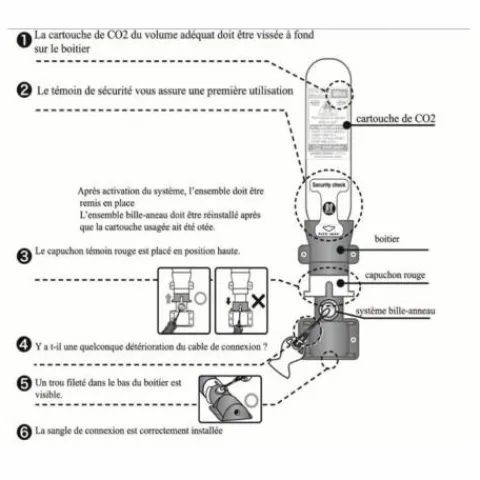 Vous pouvez toujours vérifier quelle cartouche vous avez besoin, en contrôlant l’étiquette qui se trouve dans la poche ou est fixé la cartouche. Toutes les informations du gilet airbag sont sur cette étiquette.
