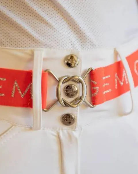 Du corail et de l’argenté, pour pimenter vos tenues préférées. Répétition de logos GEM sur tout le long de la ceinture. À porter en ville ou aux écuries.