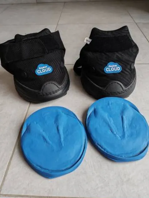 Vends paire d’hipposandales easy cloud taille 4. Idéales pour soulager les pieds de chevaux fourbus, naviculaires, abcès….