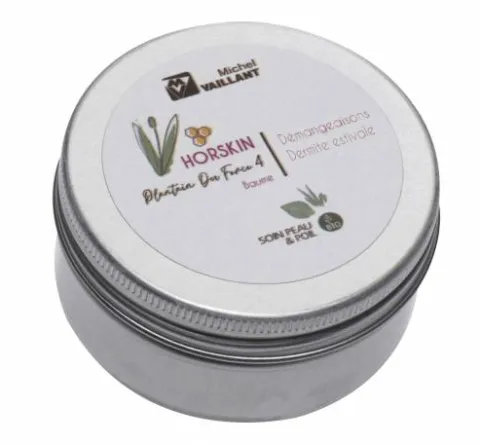 - Le baume Horskin Plantain Der Force 4 s’utilise en prévention et en traitement de la dermite estivale.