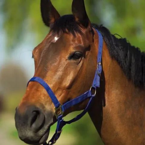 Ce licol en nylon possède une têtière et une muserolle réglable par boucle.