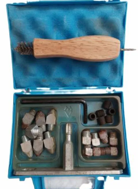 A vendre Malette à Crampons standard, bon état. Un Hérisson pour le nettoyage des mortaises de crampons est offert (état neuf)
