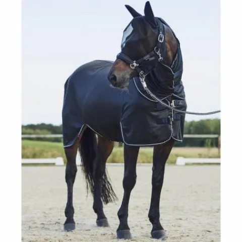 - Le bord de ce maque anti-mouche est élastique et souple. Votre cheval ne ressent donc aucune gêne et aucune pression lorsqu’il le porte.