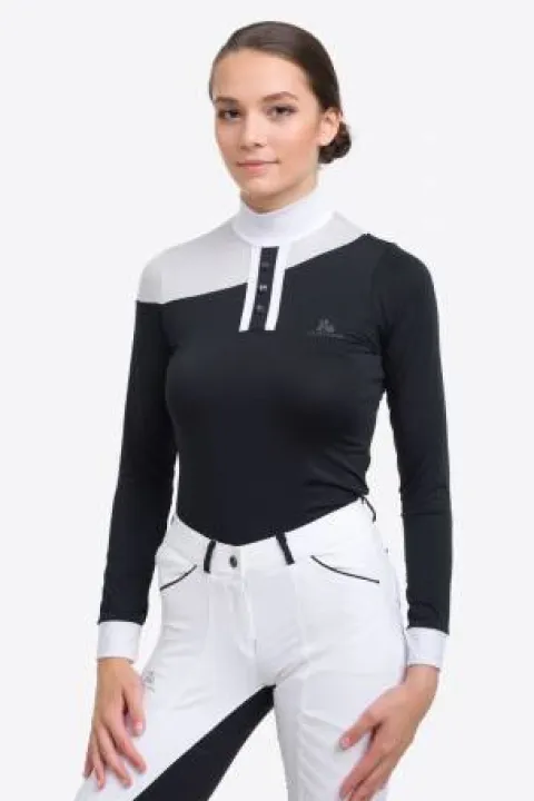 Le polo de concours équestre HIGH TECH OVAL de Cavalliera est conçu pour répondre aux exigences des cavaliers modernes. Fabriqué avec un tissu technique de haute performance et des panneaux en mesh, il offre une sensation de confort tout en évacuant efficacement l’humidité. Son design élégant et sculptant, associé à des couleurs contrastées, en fait un choix idéal pour le concours.