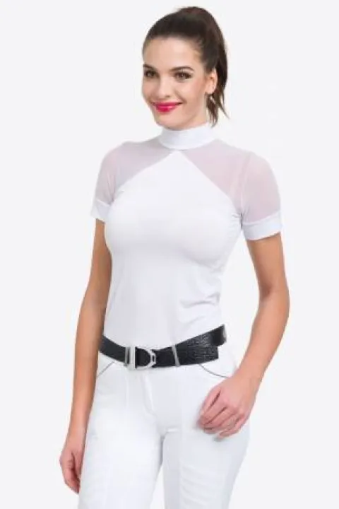 Découvrez le polo de concours équestre Marielle de la marque Cavalliera, conçu pour allier esthétique et fonctionnalité. Ce modèle se distingue par sa silhouette moderne et ses matériaux de haute performance, parfait pour les compétitions estivales.