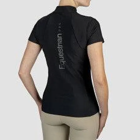 Polo technique à manches courtes avec zip et paillettes pour un style raffiné en équitation