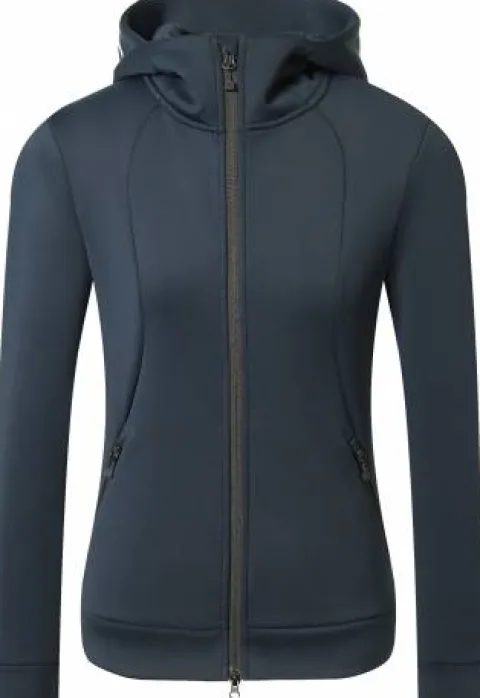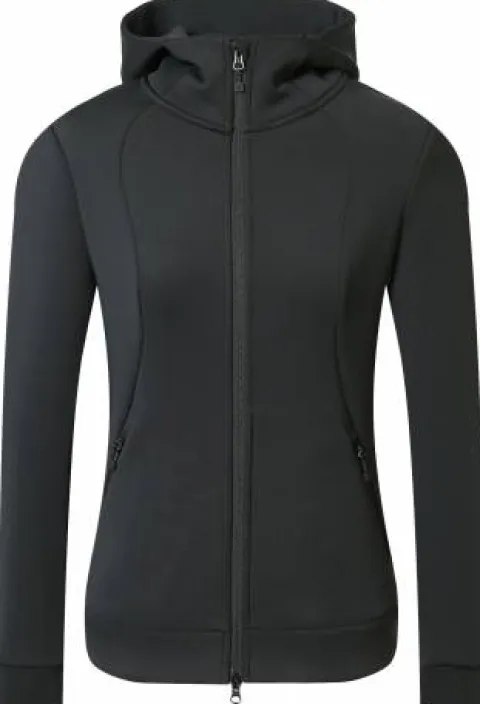 Sweat à capuche de la collection automne hiver 2025. Ce modèle se distingue par sa coupe féminine et cintrée, offrant un confort optimal grâce à son matériau en softshell. Idéal pour l’écurie, les entraînements ou la vie quotidienne.