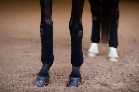 Les bandages en polaire sont décorés d’un badge équestre Stockholm chrome