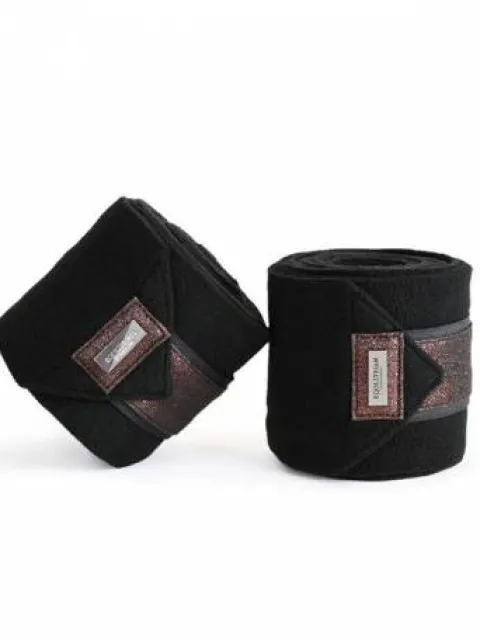 Bandages en polaire dans un beau design noir avec des détails marron pailleté. Associez-le au tapis de selle de la même collection pour compléter le look élégant.