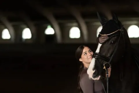 Bonnet anti-mouches crocheté dans une belle couleur noir. Décoré d’un écusson en satin marron mocha sur le devant, une bordure noire et d’un badge Equestrian Stockholm en noir.