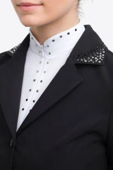 Conçu pour les activités sportives, le polo de concours équestre DIVA de Cavalliera est un choix idéal pour les cavaliers en quête de confort et de style. Grâce à ses fils microfins, ce polo évacue efficacement la transpiration et l’humidité, vous permettant de rester au frais tout au long de la journée. Son col montant moderne, agrémenté de décorations en cristaux hématite-argent noir jais, souligne l’élégance nécessaire lors des compétitions. L’ouverture zippée à l’avant permet de porter le col entièrement fermé ou rabattu, selon vos préférences.