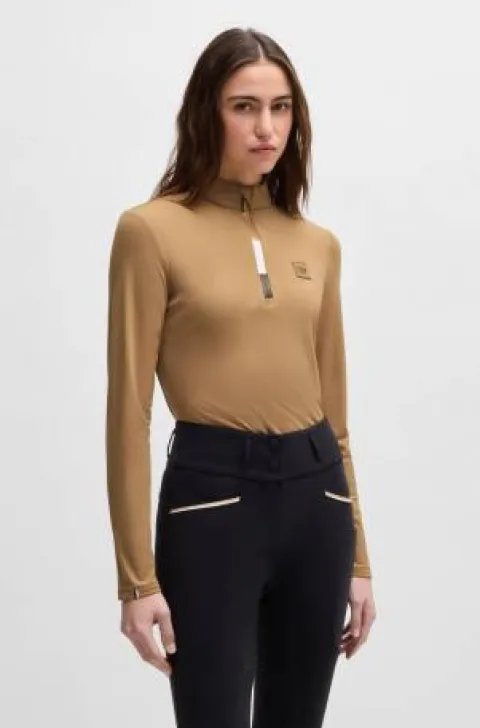 Découvrez le polo d’entraînement manches longues MINOU de Boss Equestrian, un choix idéal pour les passionnés de sports équestres. Sa conception en matière ultra-légère et brossée offre un confort remarquable durant vos séances, tandis que le mélange de tissus extensibles permet une liberté de mouvement optimale. Ce haut respirant et à séchage rapide vous maintient au sec et à l’aise, même lors d’efforts intenses. La fermeture éclair pratique facilite l’enfilage, et le patch logo discret ajoute une touche d’élégance à votre tenue.