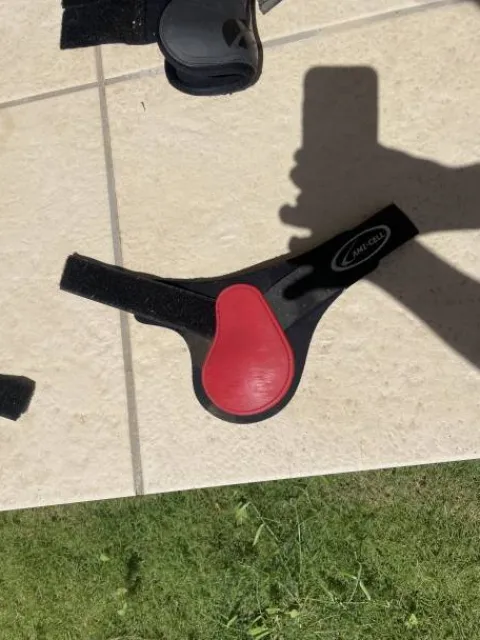 Protèges boulet rouge de la marque lamicell j’ai du les mettre qu’une seule fois parce que mon cheval ne supporte pas les protèges boulets ils sont donc pratiquement neuf. Taille poney mais va sur des petit chevaux du genre pur sang