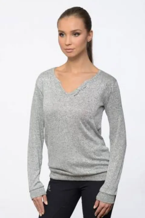 Ce pull à col en V décontracté se distingue par sa légèreté et son confort, tout en offrant une coupe flatteuse qui s’adapte à toutes les silhouettes. Fabriqué en viscose jersey doux et résistant aux bouloches, il est idéal pour les journées d’été plus fraîches ainsi que pour les saisons printanières et automnales. Son design simple est rehaussé d’imprimés sophistiqués en argent ou noir, agrémentés de cristaux au décolleté.