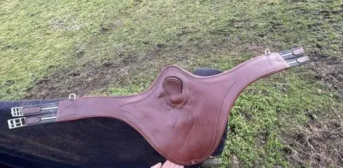 Son apparence anatomique, plus large au centre, permet de mieux répartir la pression sur l’abdomen du cheval. La légère matelassure doublée veau va procurer plus de souplesse et de contact. Les deux anneaux latéraux permettent la bonne fixation des enrênements. Elle compte également des élastiques latéraux pour faciliter le sanglage et apporter plus de confort au cheval.