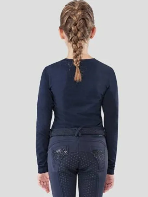Tee shirt manches longues bleu marine en coton pour fillette.