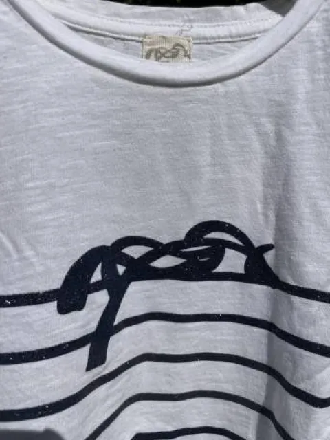 T-shirt Pénélope Leprévost, en taille 12 ans en parfait état, couleur bleu marine, blanc.