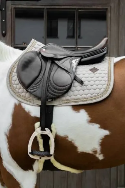 Fabriqué en coton-polyester à motif nid d’abeille, ce tapis assure un séchage rapide et un confort optimal même lors des entraînements intensifs. Son rembourrage intérieur est respirant, offrant un excellent amorti entre la selle et le dos de votre cheval. Le logo Kentucky brodé en cuir végan premium garantit une qualité visible de loin.
