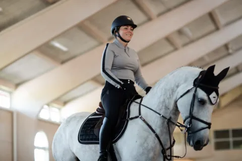 Tapis de selle élégant en noir avec détails réfléchissants. Décoré d’une bande éfléchissante des deux côtés et de l’écusson Equestrian Stockholm en noir. La matière est traitée avec un High IQ Cool Confort qui donne au tapis de selle des capacités de séchage rapide et d’évacuation de l’humidité. Cela aide votre cheval à rester au sec et au frais plus longtemps.