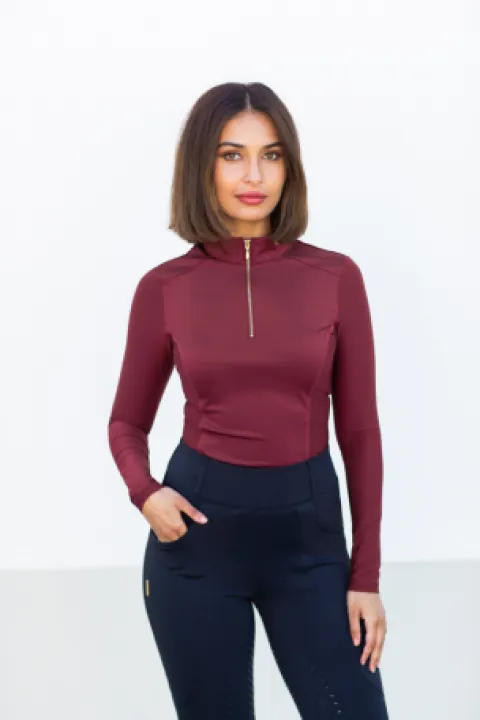 Top manches longues Essential Mesh new maroon de la marque Equestrian Stockholm