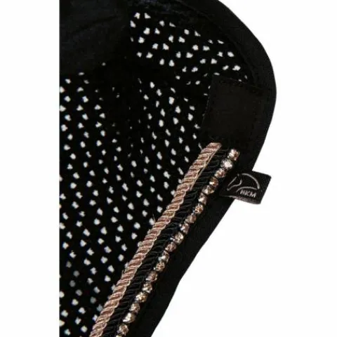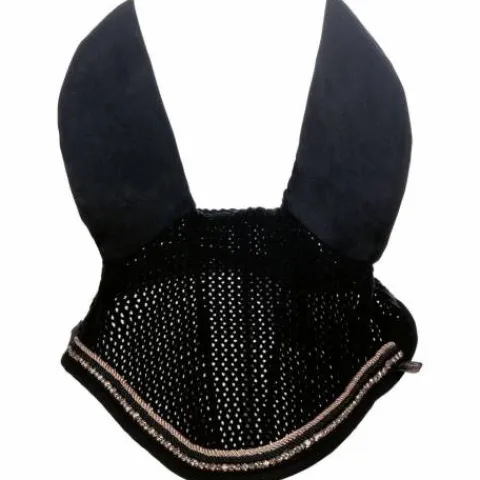 Découvrez le bonnet anti mouches de la collection Rosegold, conçu pour allier esthétique et fonctionnalité. Ce modèle tricoté est orné de détails rosegold, notamment une corde et de petits cristaux qui s’harmonisent parfaitement avec votre tapis d’équitation.