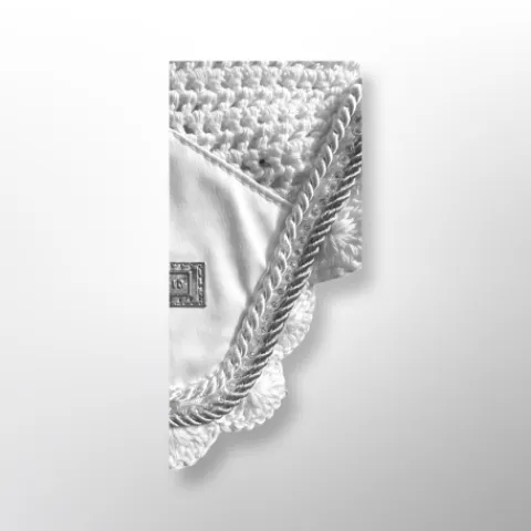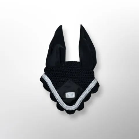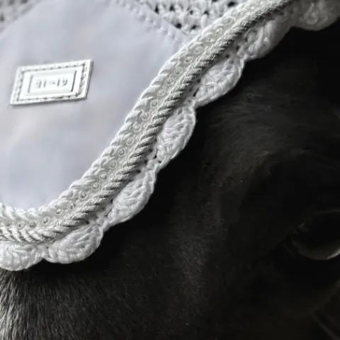 Les bonnets anti-mouches EQUICO sont fabriquées avec du crochet tricoté à maille ouverte pour donner un aspect respirant et du tissu élastique uni confortable sur les oreilles pour minimiser le bruit. Le filet de protection pour les oreilles est doté d’un passepoil en cordon avec une fine bande de cristal sur le devant avec le logo EQUICO en argent. Disponible dans une sélection de différentes couleurs (noir, gris étain, blanc et bleu français) assorties aux tapis de selle de saut et de dressage satinés EQUICO.