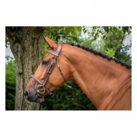 - La têtière légèrement anatomique du bridon assure un confort optimal pour le cheval lors de l’utilisation.