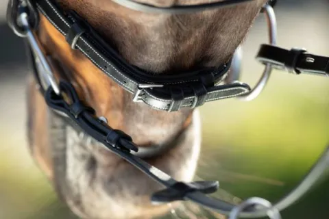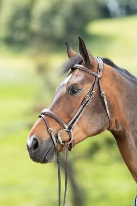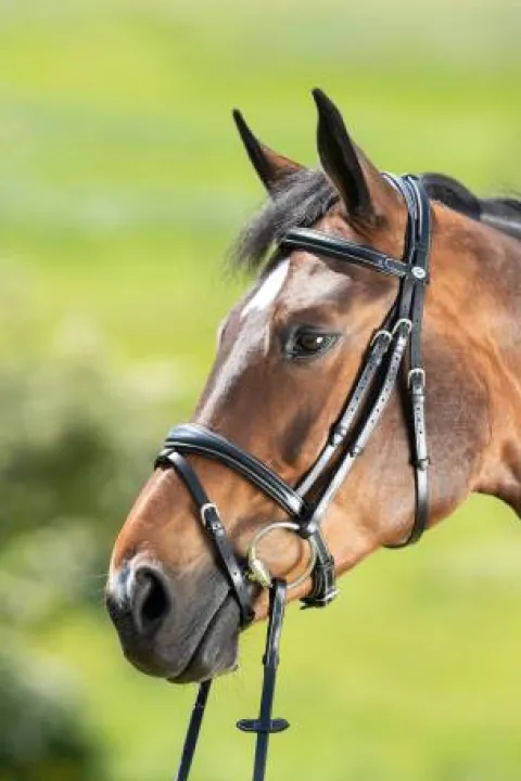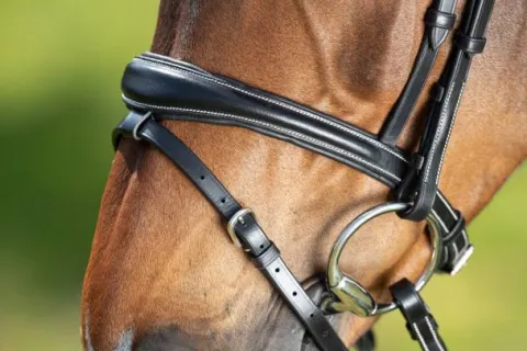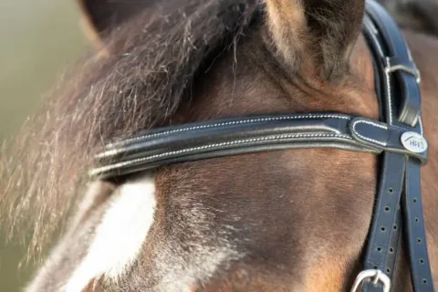 - Large têtière anatomique, frontal et muserolle rembourrés et doublés de cuir souple