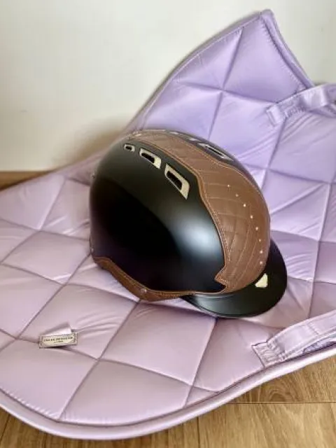 Petite visière avec Crystal, bicolore noir et marron, bi matières, mousses intérieure interchangeables, sigle Aurak interchangeable avec drapeau de la France