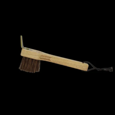 Ce cure-pieds verni en bois d’hévéa est parfait pour nettoyer les sabots de votre cheval ! Nous avons ajouté une petite brosse d’un côté, avec des fibres en polypropylène très résistants. Cela en fait une brosse très dure, idéale pour retirer le sable et la saleté des sabots de votre cheval. Le cure-pieds a deux grips et une forme anatomique. Nettoyez la brosse en la trempant dans l’eau chaude savonneuse et soyez certain de la garder pendant longtemps.