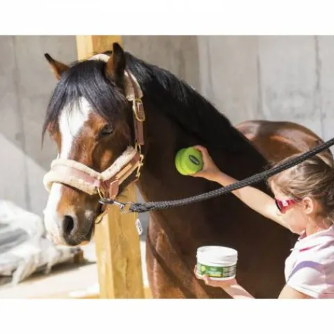 Application à l’éponge. – Application silencieuse à l’éponge, idéal pour les chevaux anxieux. – Application sur tout le corps, et idéal pour les zones délicates telles que le dessous du ventre, des cuisses…