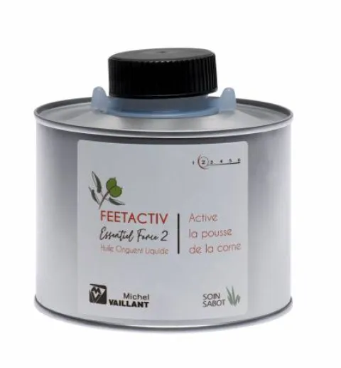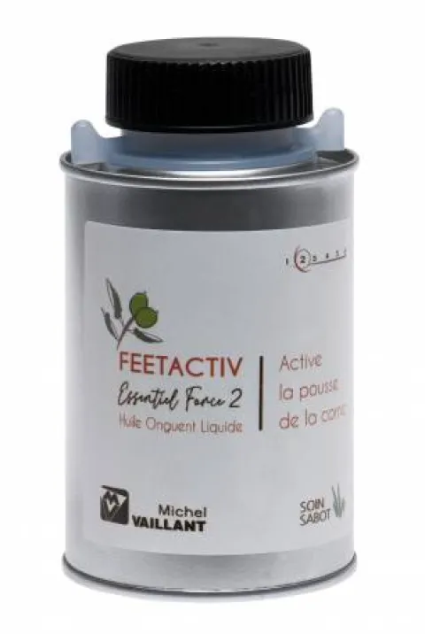 - Active la pousse d’une corne de qualité suite à des lésions de la boîte cornée (seimes, fourmilières…). Elle est particulièrement indiquée sur des pieds secs présentant une corne fragile et cassante.