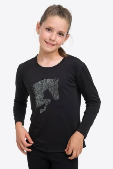 Ce t-shirt doux à base de coton offre une silhouette flatteuse pour tous les amoureux des chevaux. Sa confection en fibres naturelles permet de conserver la forme tout en assurant un drapé élégant sur le corps. Avec un col ras du cou et des mancherons, il est orné d’un motif strass représentant un cheval en plein saut sur la poitrine. Idéal pour afficher votre passion pour l’équitation, ce haut se porte parfaitement après une journée à la carrière. Disponible en manches courtes et longues.