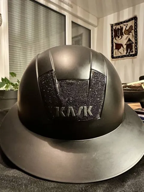 Casque équitation Kask Kookie Lady Crystals taille 57 acheté il y a moins d’un an en très bon état, peu porté. Légères rayures sur côté droit du casque mais peu visible cf photos