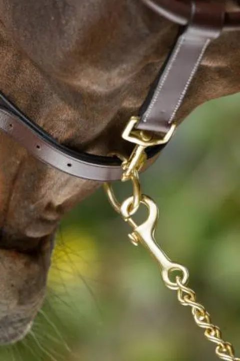La muserolle rembourrée et doublée de cuir souple, ornée d’une broderie décorative, ajoute une touche d’élégance supplémentaire à ce licol. Elle est également ajustable pour s’adapter parfaitement au museau de votre cheval. De plus, la sous-gorge est complètement amovible, permettant ainsi un pansage plus pratique et facilitant le nettoyage du licol.
