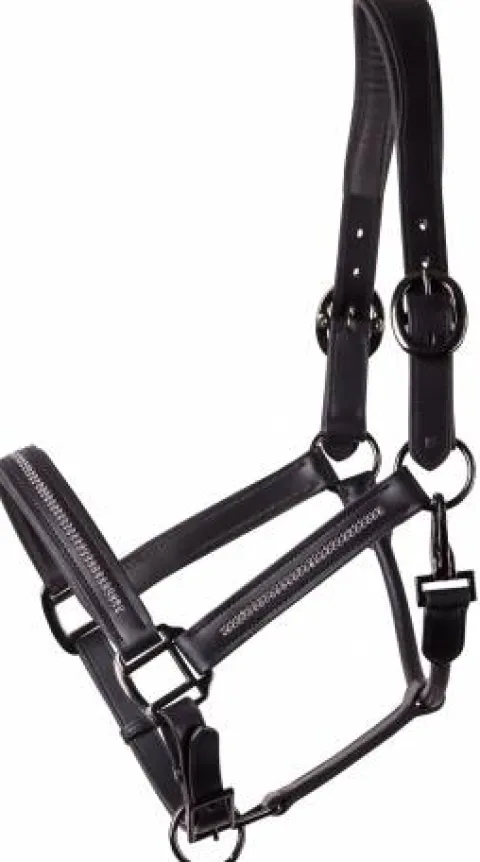 Licol en cuir de luxe décoré de cristaux sur la muserolle et les montants.