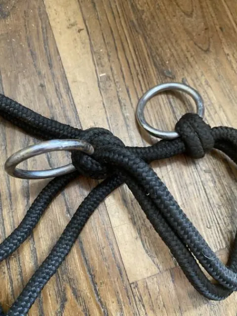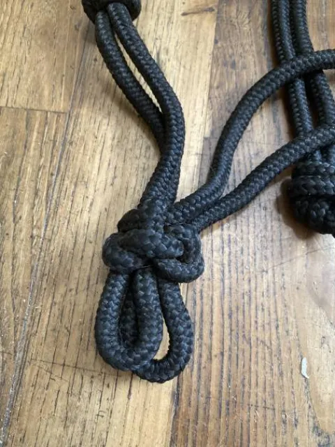 Licol éthologique noir, porté une fois . Avec des anneaux pour attaché des rênes