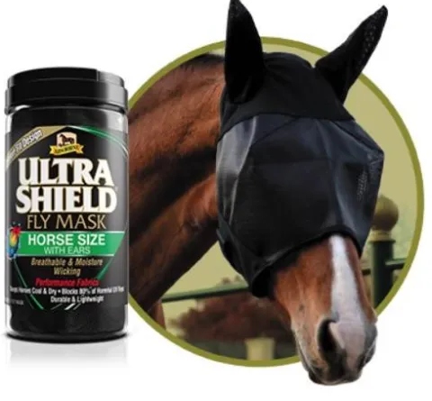 Le masque anti-mouches avec oreilles de la marque Absorbine est conçu pour offrir une protection efficace contre les insectes tout en garantissant le confort de votre cheval. Sa conception légère et respirante permet une utilisation prolongée sans gêne.