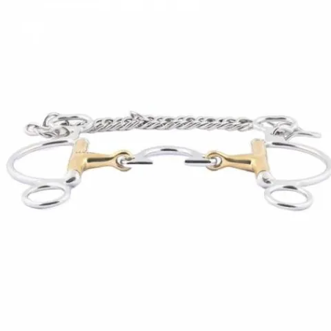 - Caractéristiques : Ce nouveau mors de la gamme Jump’In est conçu pour offrir une action directe mais douce. Il combine les avantages d’un Pelham et d’un Pessoa. Avec son absence d’anneau supérieur, il offre une action plus directe qu’un Pessoa tout en limitant le jeu. La présence de la gourmette permet également d’accroître l’action. Ainsi, le cheval est moins enfermé dans son action, tout en restant sous votre contrôle.