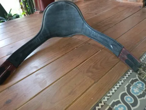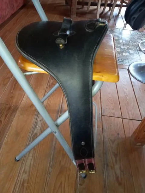 Sangle bavette en cuir noir à vendre. 135 cms quelques traces mais en très bon état !