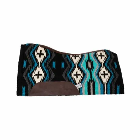 - Tapis de selle Western en laine douce avec rembourrage en feutre et renforts en cuir sur les côtés et à l’arrière.