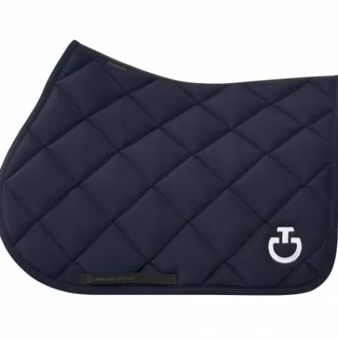 Tapis de selle modèle DIAMOND QUILTED coloris marine avec bordure marine fabriqué à partir de jersey technique respirant. La forme anatomique permet un ajustement optimal et est combinée à un tissu coton nid d’abeille 3D qui offre la bonne adhérence et maintient la respirabilité.