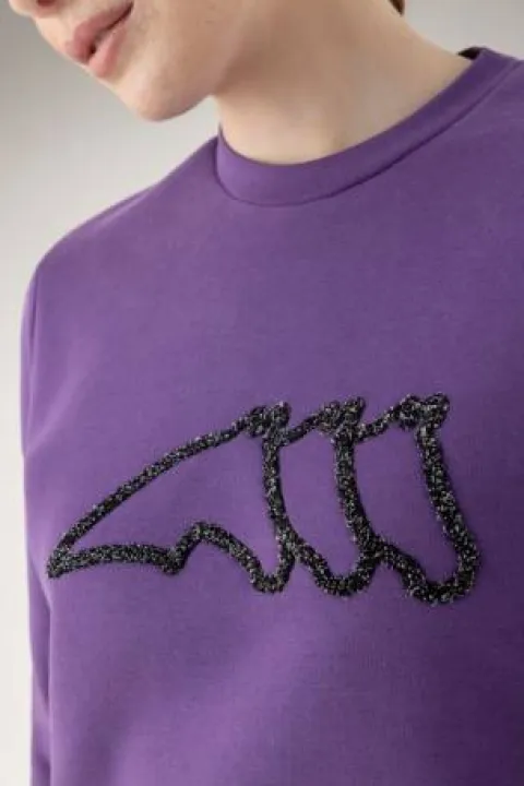 - Orné d’un logo brodé sur la poitrine, ce pull côtelé sur les poignets et le bas offre une tenue confortable et près du corps.