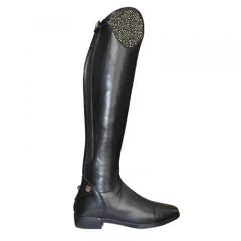 - Botte sans lacets, avec taquets d’éperon.