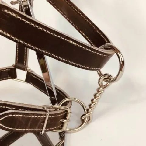 Bouclerie française nickelée. Mousqueton sur la sous ganache.