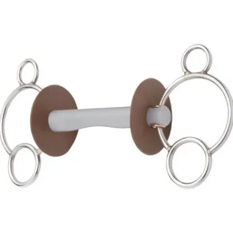 Cette embouchure de forme anatomique repose avec légèreté et de manière régulière sur la langue, lui offrant plus de place et de liberté de mouvements. Lors du contact, la pression sur les barres et la langue est régulière et évite les pincements latéraux. L’utilisation de rondelles en caoutchouc rend impossible le pincement des commissures des lèvres.