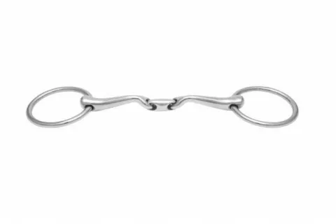 La partie « double brisure » du mors n’apporte pas de pression sur le palais, réparti au mieux la pression dans la bouche, n’a pas d’effet « casse-noix » et, améliore la connexion entre le cavalier et la bouche du cheval.