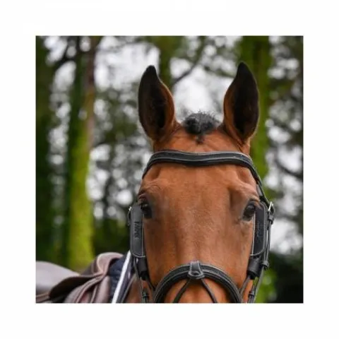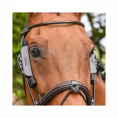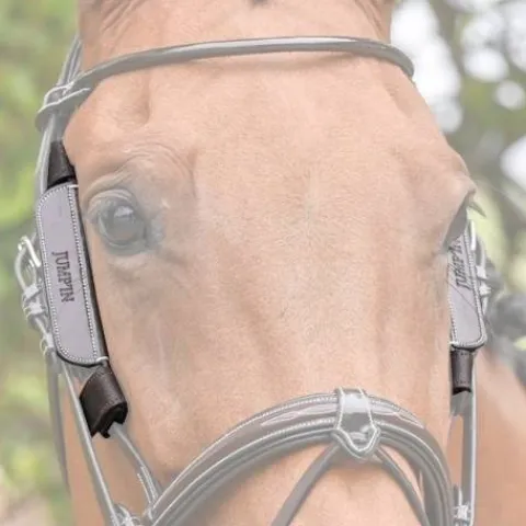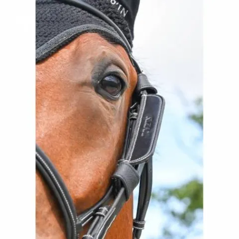 Les oeillères s’attachent sur les montants de la muserolle grâce à deux attaches velcro à chaque extrémité.