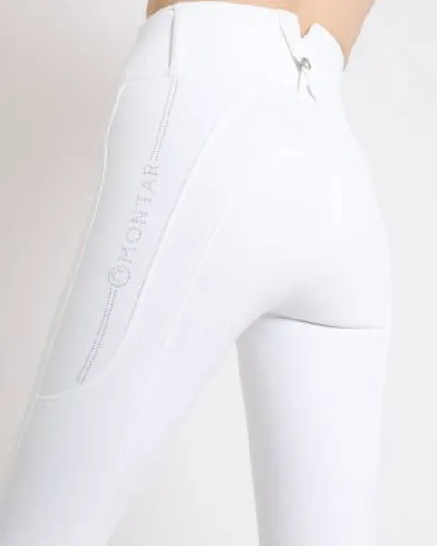 Logo en crystaux ton sur ton sur le haut de la jambe gauche