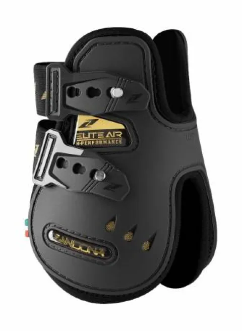 ELITE AIR: une ligne haut de gamme offrant une parfaite combinaison entre la protection maximale, le confort, la respirabilité et la légèreté! – Protège-boulets innovants, développés pour maximiser la performance et le confort du cheval de jumping- Structure TPU anatomique et flexible – Gel-Tech pour une meilleure absorption des chocs- 6 prises d’air pour une ventilation optimale- Doublure Coolmax, combinée à un tissu Air Mesh 3D et du néoprène perforé pour une excellente respirabilité – 2 versions disponibles: courte ou longue (ZAN111HL). Sur la version courte, la partie reposant sur le tendon est plus étroite, sans pour autant compromettre le confort et le bien être du cheval